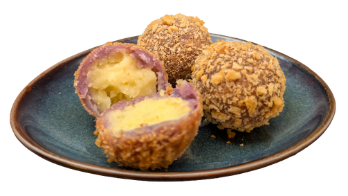 Frittierte Tarokugeln nach vietnamesischer Art mit süßer Mungbohnenfüllung – außen knusprig, innen weich.