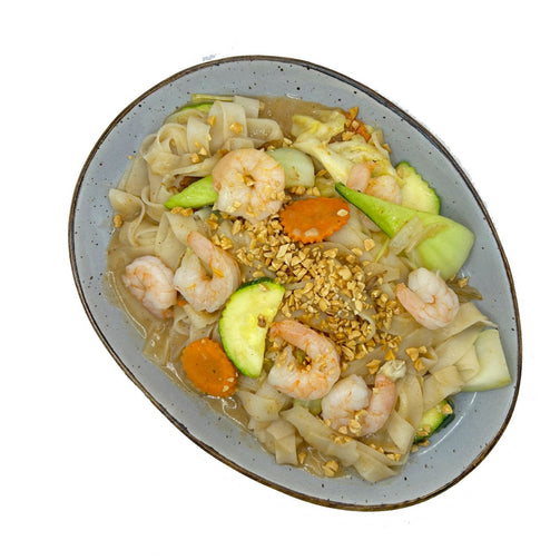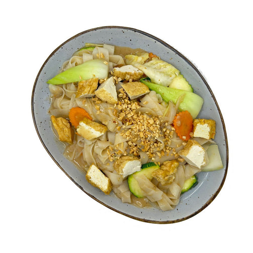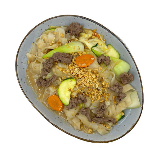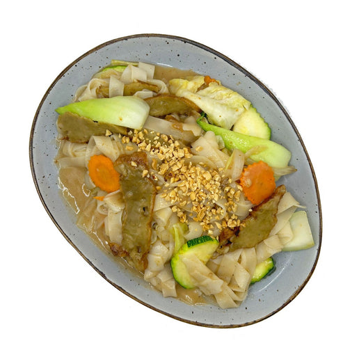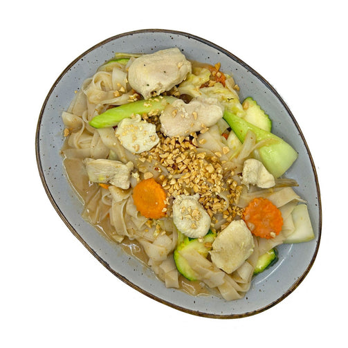 Gebratene Reisbandnudeln mit Gemüse und Erdnusssauce