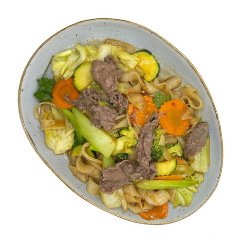 Reisbandnudeln mit Gemüse & Huhn oder Rind (A,F)